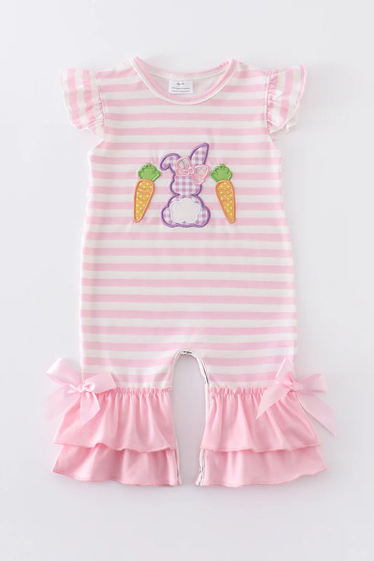 Pink Rabbit Carrot Applique Ruffle Girl Romper