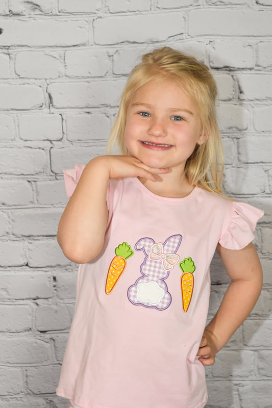 Pink Rabbit Carrot Applique Ruffle Girl Set