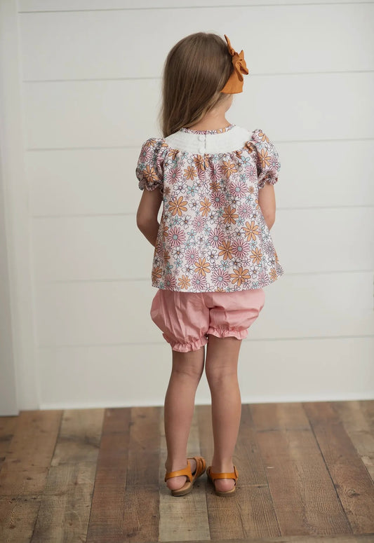 Light Pink Daisy Smocked Top and Bloomer 2 pc set