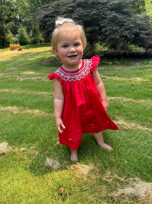 Rich Red Bishop Hand Smocking Dress