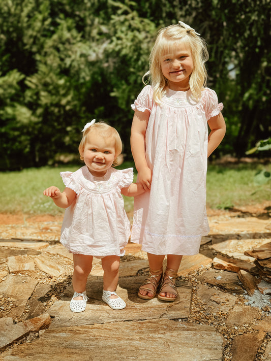 Light Pink Daisy Smocked Top and Bloomer 2 pc set