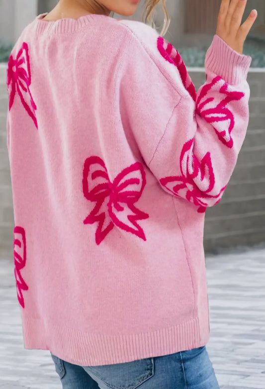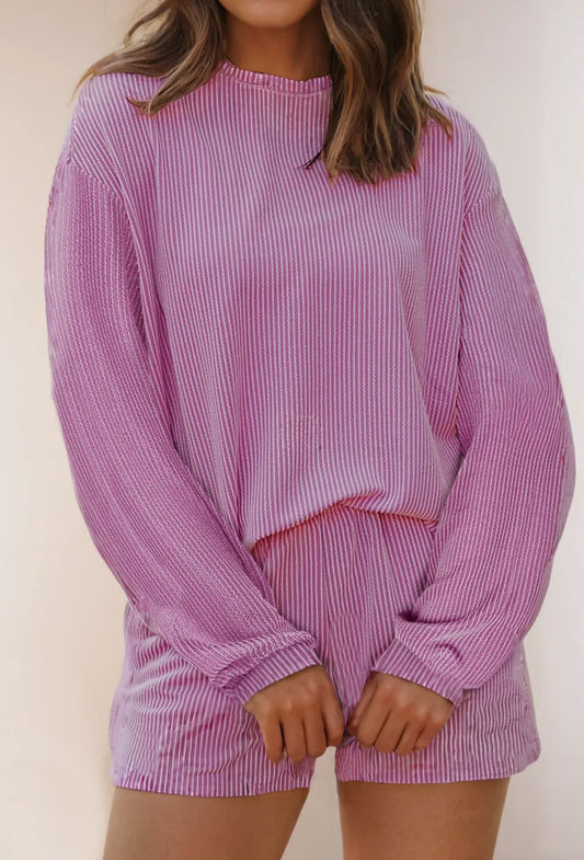 Pink Ribbed Textured Knit Long Sleeve Shirt and Shorts Set