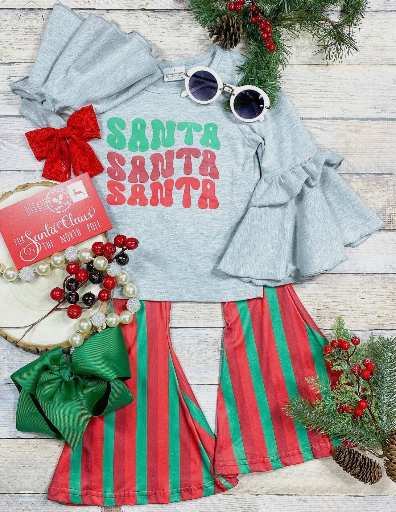 Santa Flared Top & Bell Bottom Girls Set
